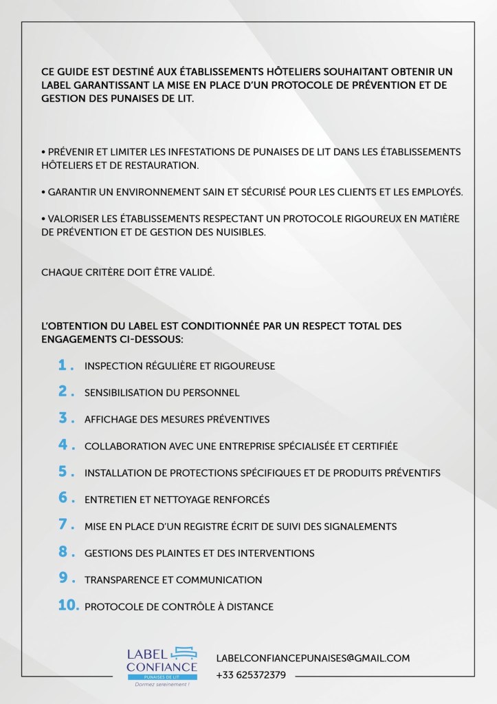 - Le Label Confiance Punaises de lit, un Argument Marketing Fort.Chers HĂ´teliers, Les punaises de lit sont devenues un vĂ©ritable flĂ©au pour l’hĂ´tellerie. Une seule chambre infestĂ©e peut entraĂ®ner uneLire la suite « Le Label Confiance Punaises de lit, un Argument Marketing Fort. »